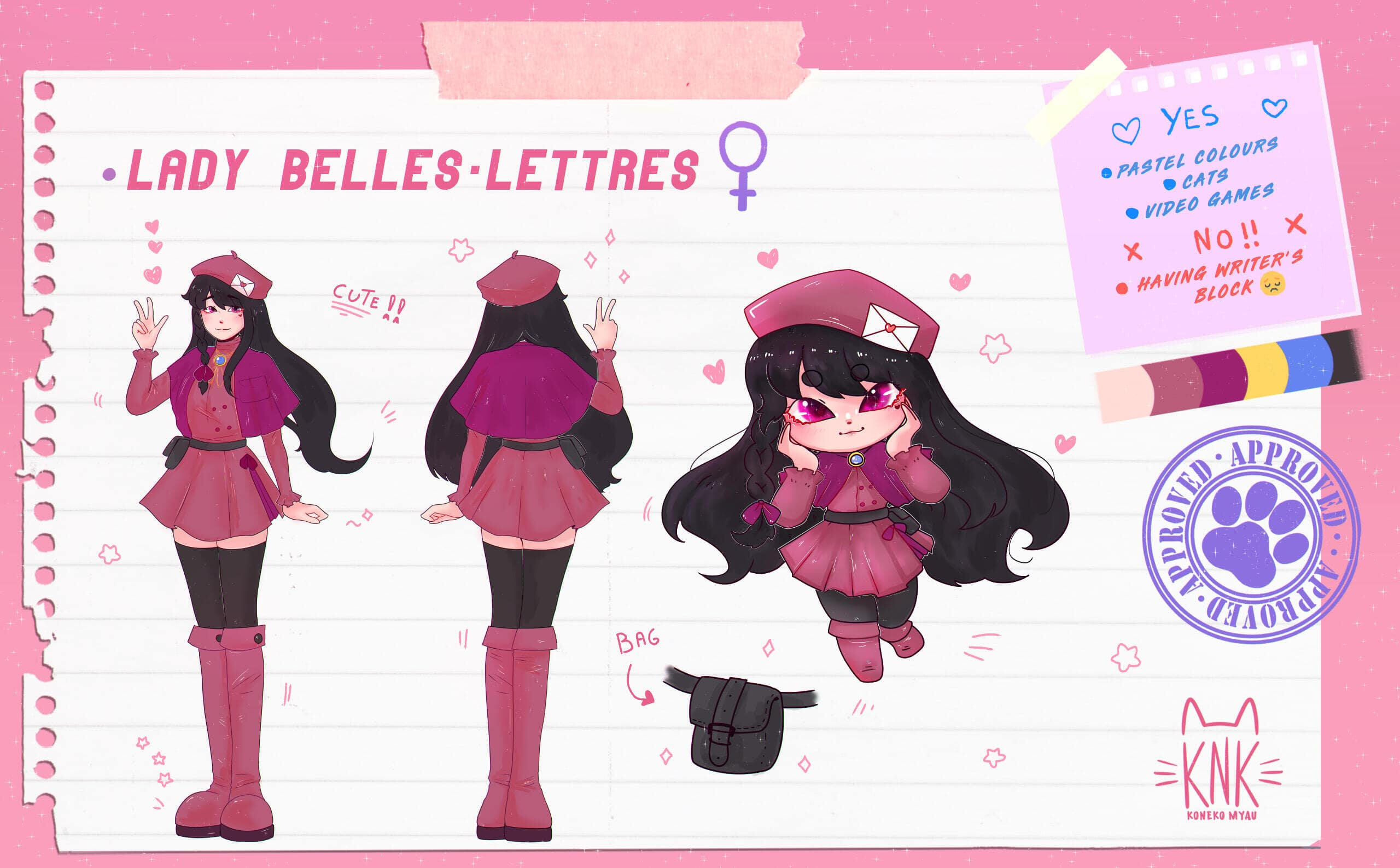 My name is Lady Belles-lettres, but you can call me Belles.I am a gal who loves to write stories (including fanfiction!) and make music. I also love video games and pretty much any medium that has a compelling story and/or interesting characters. I also develop video games, voice act, draw art and make YouTube videos on the side.What's next? I love pastel colours... I love cats... Oh! I love shipping too. Yes, I eat and breathe ships. They don't call me a character shipping enthusiast for nothing.